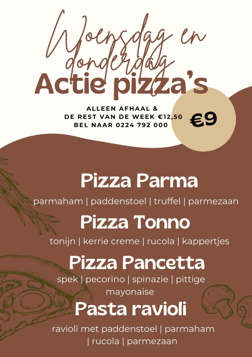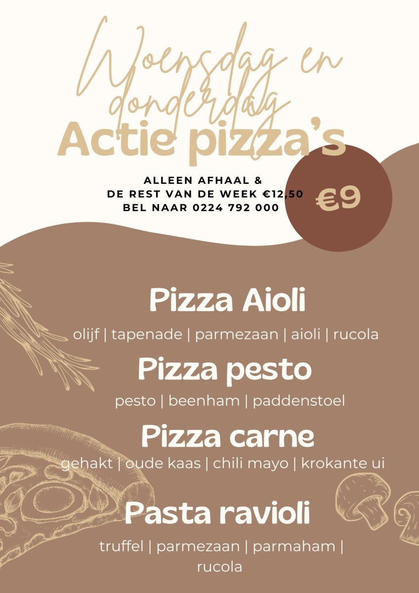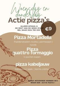 Pizza bestellingen kunt u op dezelfde dag vanaf 12:00 uur plaatsen